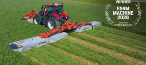 The GMD 15030 awarded FARM MACHINE 2026 at the AGRITECHNICA 2025 in Hannover. With a working width of 14.50 metres, the machine delivers up to 50% more output compared to traditional triple mower combinations, which typically range between 9 and 10 metres.