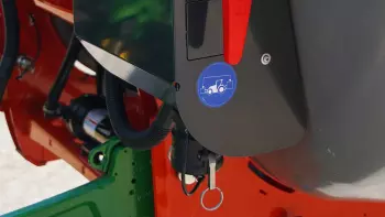 The PF sprayer has a compact design, giving the operator excellent visibility of the front of the tractor. The needle gauge, easily visible from the cab, indicates the volume.