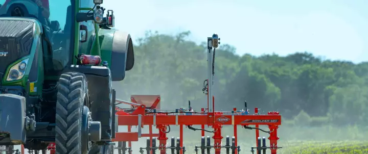 The parallelogram concept is one of the keys to the high-performance capacity of the mechanical weeder. The longer the parallelogram, the better the ground contouring on uneven ground. In addition, enables soil penetration of up to 120 kg per weeding unit, even at high speeds and on plots with slake crusts.