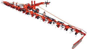 - The small diameter rotors adapt individually to the ground profile and the carrying chassis, ensuring efficient turning over and fast drying of the forage.