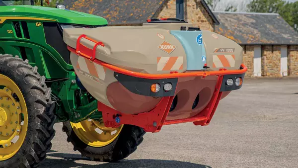 The PF sprayer has a compact design, giving the operator excellent visibility of the front of the tractor. The needle gauge, easily visible from the cab, indicates the volume.