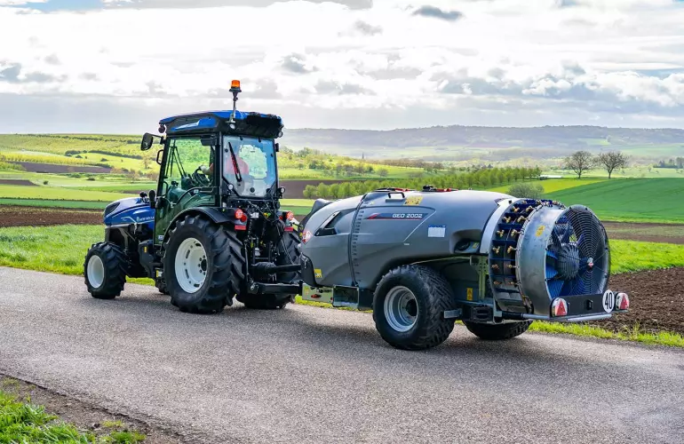 GEO 2 trailed sprayers, with their 850 - 950 mm round rear-suction fan (R-85HF and R-95HF), offer high air volume performance.