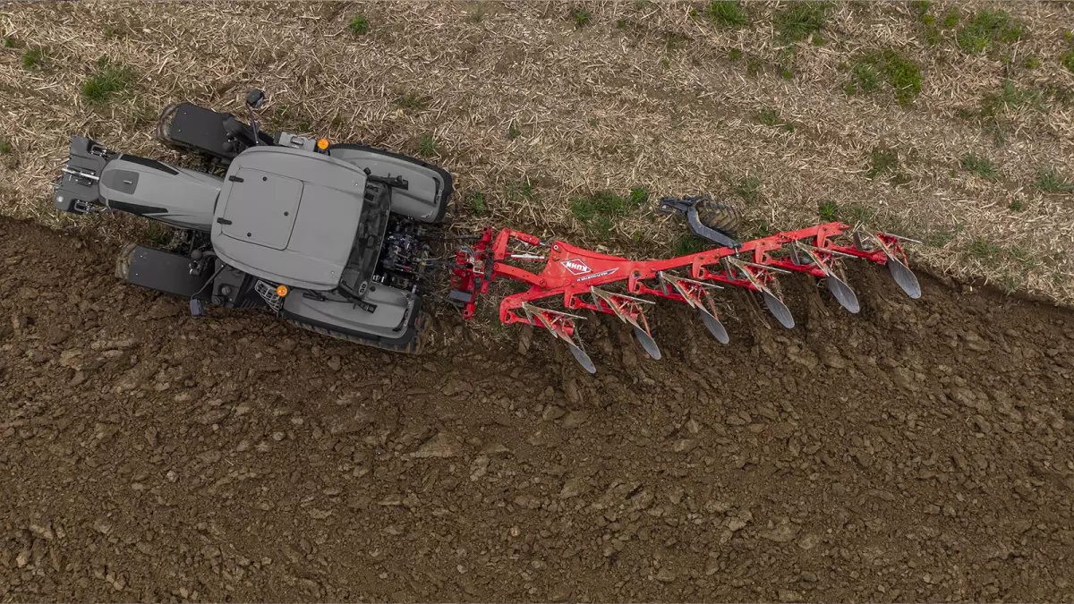 The result of 160 years of expertise in ploughing, the fixed headstock allows for quick hitching thanks to the fixed hitch arms, with simplified access for all operations. For transport, the GODRIVE oscillating headstock, combined with the WORK AND ROLL hydraulic wheel, allows safe travel at speeds of up to 40 km/h, with a steering angle of ±40°, comparable to a semi-mounted machine. The EASYDRIVE option completes this system by facilitating the transition from working to transport position without tools, thanks to the quick neutralisation of the top link. These systems are complementary and can be combined for maximum flexibility. Finally, the OPTIDRIVE suspension ensures smooth and safe driving on headlands, while storage in butterfly position during off-peak periods simplifies maintenance and reduces space requirements.