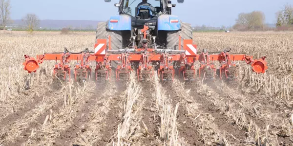 A strip till machine can be used to follow crops such as maize/corn, sunflowers, oil seed rape (OSR), soya and sugar beet in most soil types. It is best suited to precision drilled crops. With discs at the front and coulters to prepare the soil, the KUHN Striger also has a leg that prepares the soil for granular, liquid, or organic fertiliser to be added.