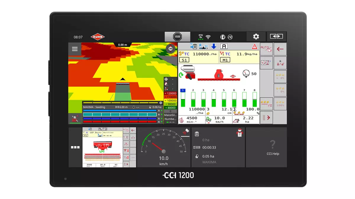The terminal has been developed with three priorities: increased performance, visibility and flexibility. These efforts resulted in a 30.5 cm (12.1") touchscreen terminal in the shape of a tablet, allowing the operator to display all of the essential information. The user-friendly, antiglare screen, offers excellent visibility even with the sun shining on it.
