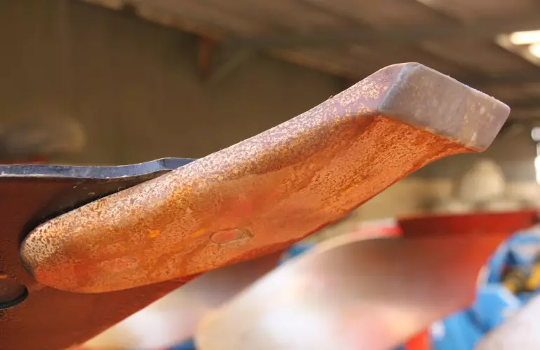 “Each set of non-genuine points lasted for about 250 acres,” he explains. “They were cheaper than Kuhn’s own hardened points, but, as with the standard points, we were still changing them too often for our liking. They were also prone to chipping which increased their wear rate and meant we were changing individual points which increased each plough’s downtime.