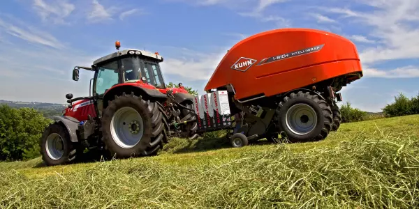 The KUHN i-BIO+ is an ultra compact and lightweight round baler-wrapper combination. With its low weight and excellent manoeuvrability, the KUHN i-BIO+ is perfectly suited to hilly conditions and use on small or wet fields with narrow access gates.