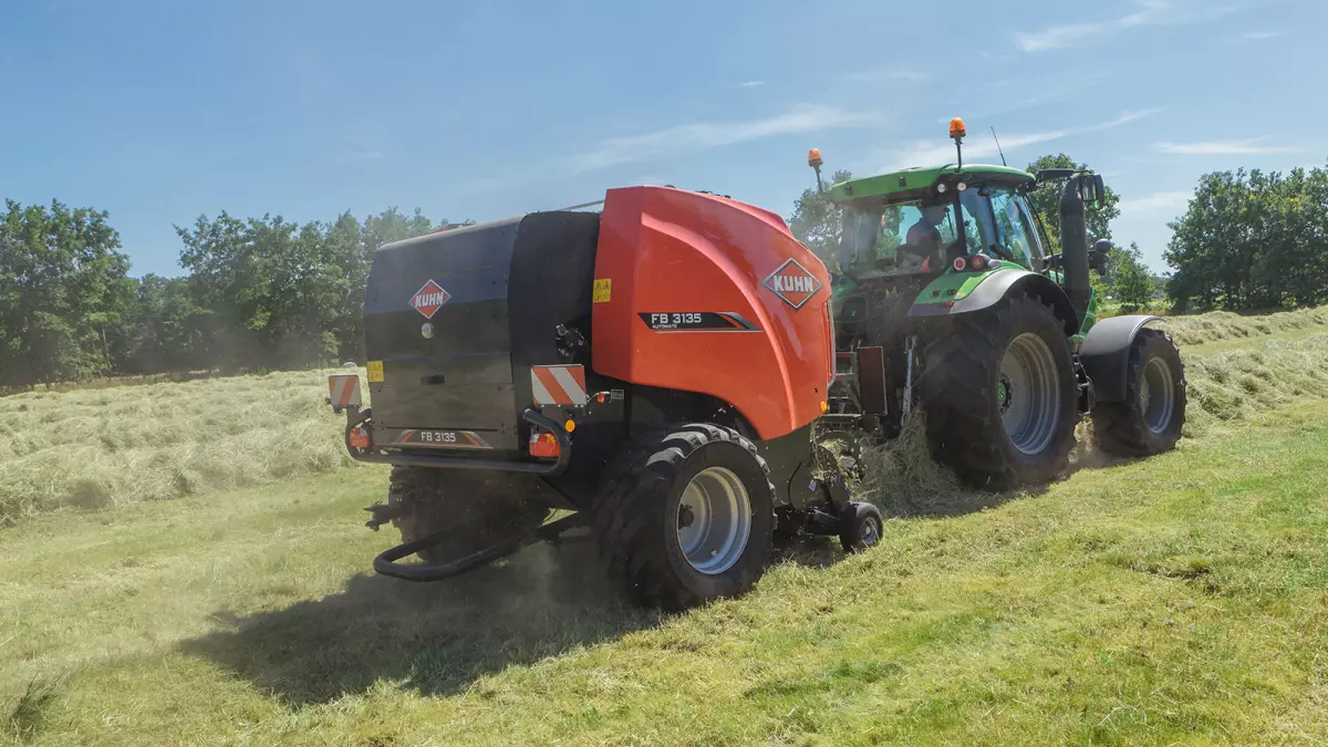 The cam-steered pick-up on the FB 3130 and 3135 maximises the full capacity of the machine. With a working width of 230 cm, the machine is capable of working in all windrows and will not let you down, even in the toughest conditions. Straight pick-up tines help release the crop and reduce crop wrapping. Camless-shaped crop guides result in an efficient and gentle pick-up. A cam track pulls the tines straight down in the rearward position to avoid wrapping, making this the only hybrid pick-up on the market today. Therewith, it can handle every kind of crop, from long straw up to the shortest autumn silage or crops with fragile leafs. The pick-up features standard pendulum frame and optional pivoting pick-up wheels to allow the pick-up to adapt to changing field conditions. <br/><br/>