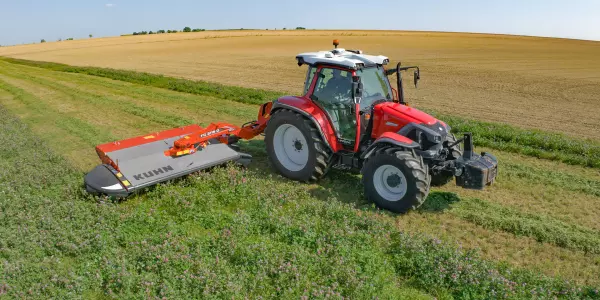 The first mower with 3.10 m and 3,50 m working width, combining conditioner, LIFT-CONTROL suspension kinematics and vertical folding joins the KUHN mounted mower conditioner family.