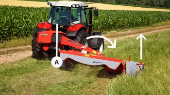 When the cutter bar glides across the ground, it is inevitably subject to rearward stress (1). The higher the rearward stress, the more the ground pressure is reduced (2), thus adapting to uneven terrian. There are two advantages to this: plant cover is preserved and less impurities get into swaths.
