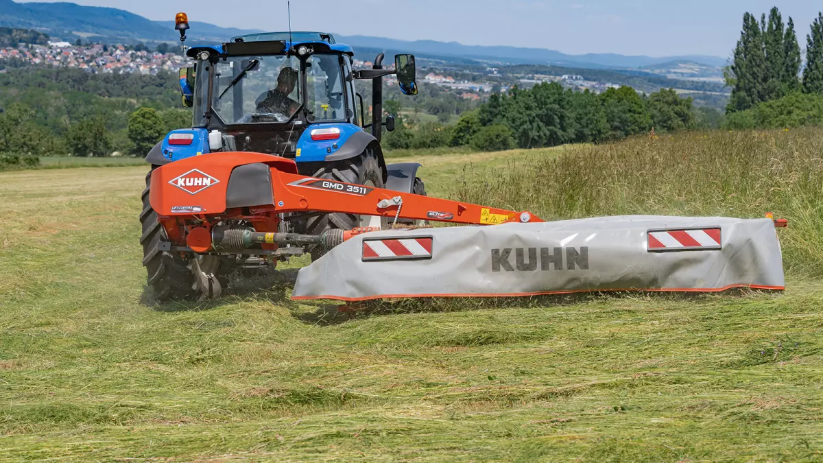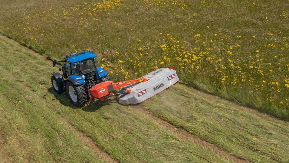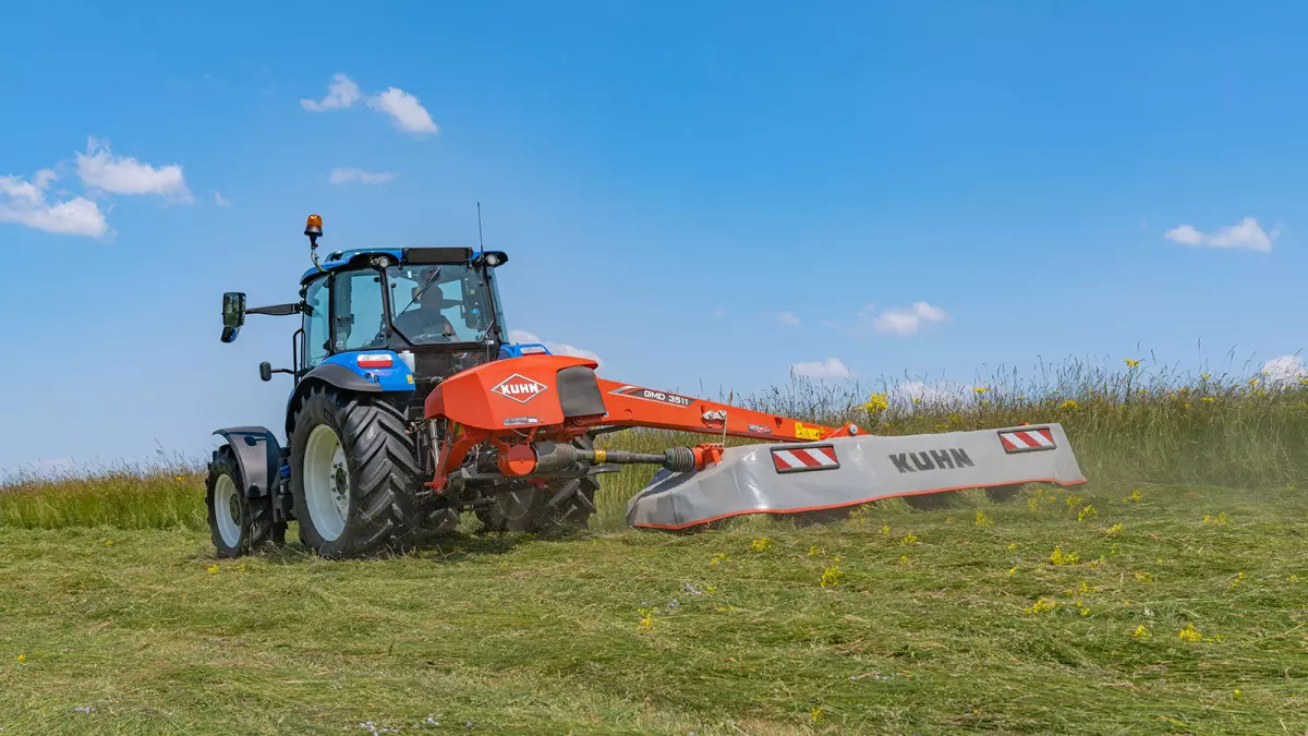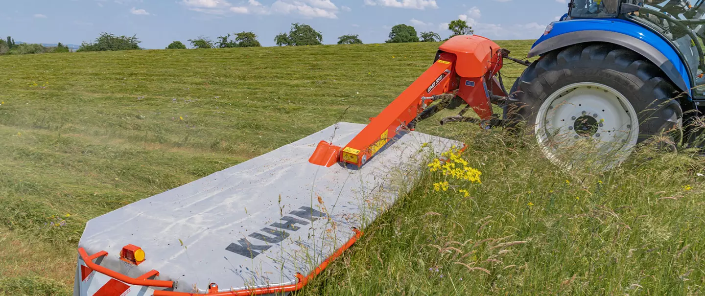 No farmer can allow their mower to get damaged mid-season by hitting an obstacle or a wrong manouvere. These mowers are equipped with an active system that ensures constant ground pressure, up to an angle of 11°. Should the unit come into contact with an obstacle, ground pressure is reduced and the mower unit pivots up to 25 degrees to the rear and passes over the obstacle. The active Non-Stop breakaway system is also effective when the cutter bar is impacted on the left as the arm's pivot point is far enough away from the first discs (A). The mower unit returns to its initial work position automatically with the NON-STOP system. The suspension and NON-STOP safety system combination of this machine is unique in the market.