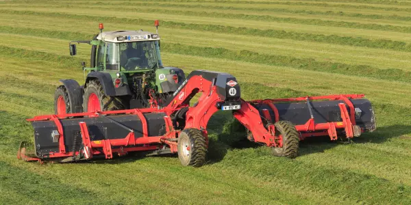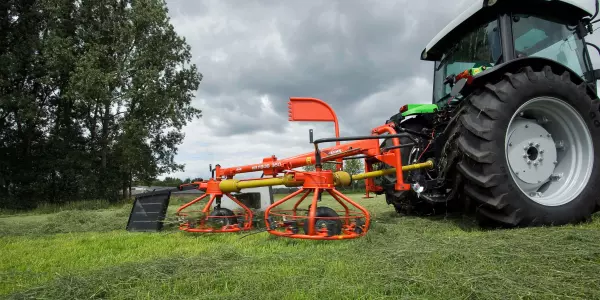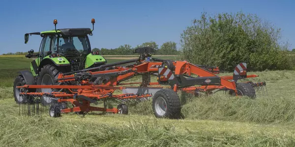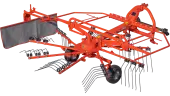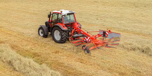 KUHN's rake design is well adapted to harvesting and preserving the quality and nutritional value of the forage. Single-rotor rakes are a simple and effective swathing solution. The KUHN range offers models in mounted or trailed versions, with working widths from 3.20 m to 5.00 m.
