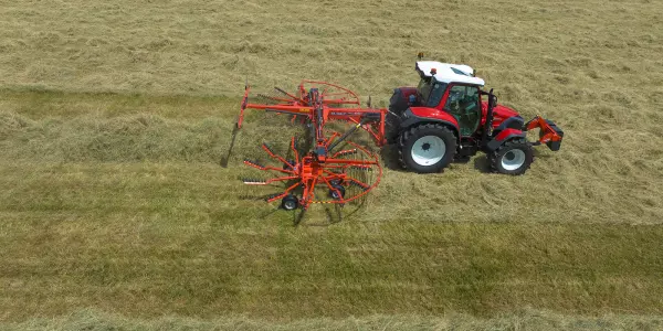 GA 6501 and GA 7501 + twin rotor rakes deliver central swaths between 5.40 m and 8.00 m. Their raking quality is impressive and they produce perfect swaths for fast dry-down.