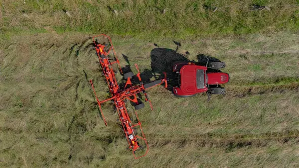 The rotor design and more rigid baseplate greatly reduce vibrations. The press-forming of the baseplate and arm have been reinforced. Tine deflectors eliminate the load on the tine arms, and prevent forage from riding up and winding round the rotor tines. The « anti-loss » function prevents losing tines in the forage which could damage the machines that follow and pollute the ration.The new OPTITEDD rotor pushes the limits in terms of resistance and lifetime of the working parts. It allows you to double the surface area you can ted. The design of the rotor, the arms and the tines means increased robustness so that the machine can work even in the most extreme conditions (heavy forage, stony ground, etc.).