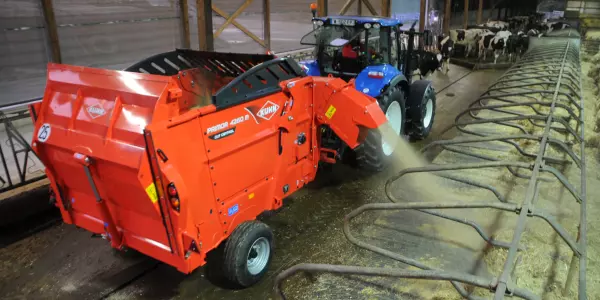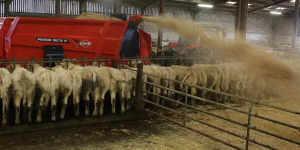 PRIMOR 3570 M trailed all-fodder straw bedder and feeder, with the POLYDRIVE system and a capacity of 3.5 m3